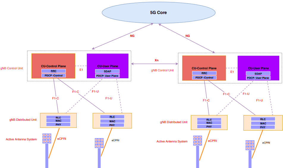 5G NR Interfaces X2/Xn, S1/NG, F1 and E1 Functions