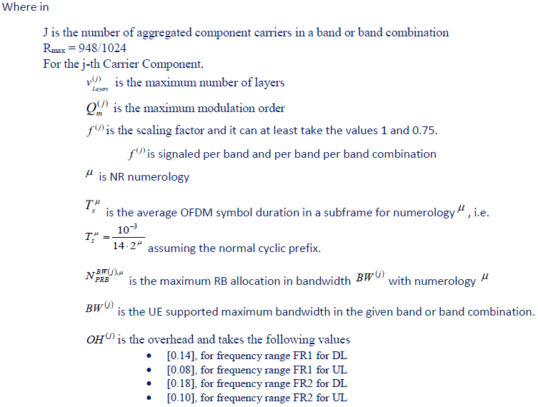 5G NR Throughput Calculation
